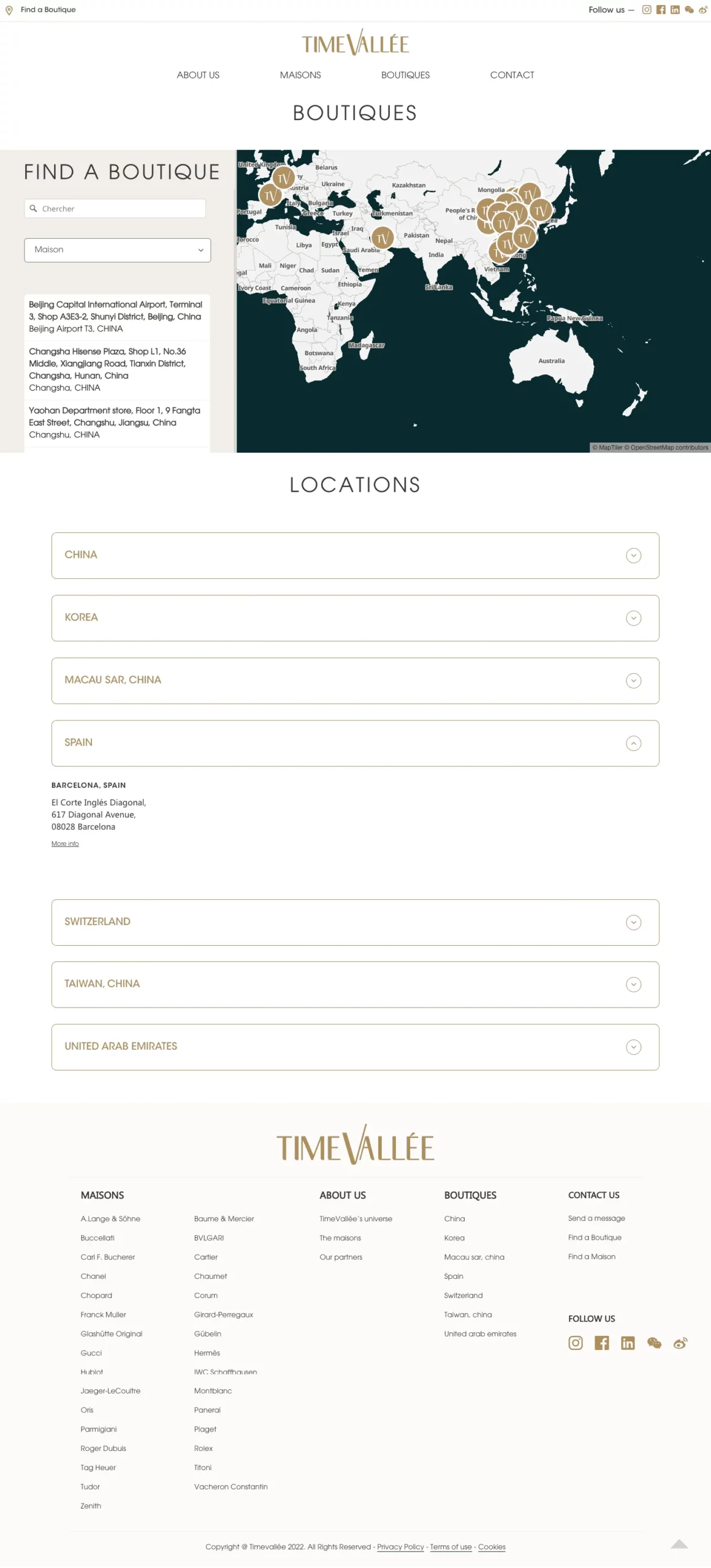 Avec l'ouverture de nouveaux concept store en Asie et en Europe. Time Vallée souhaitait également proposer à ses utilisateurs une carte de ses points de vente interactive.